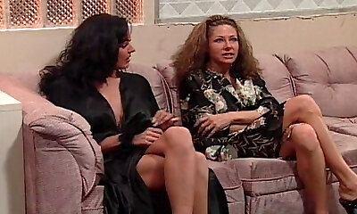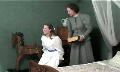 Dominating mistress in corset fucks submissive babe doggy fashion
