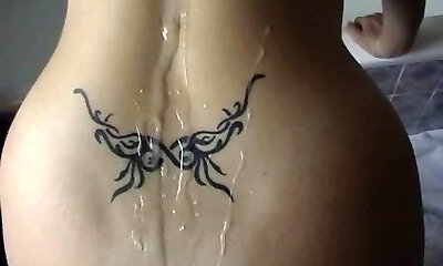 Bombshell lets dude wank on her hawt ass and drizzle it with jizz