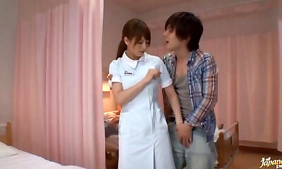 Good looking Japanese nurse and one horny guy have horny fucky-fucky