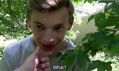 Kinky teenage gets her slit stretched outdoor and gives blowjob