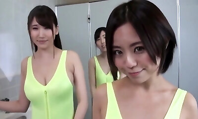 Asian teens pee in restroom