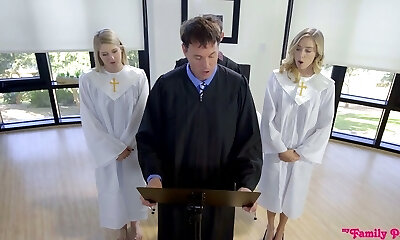 Wicked babe Haley Reed goes wild on a hard pillar in front of priest