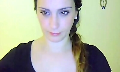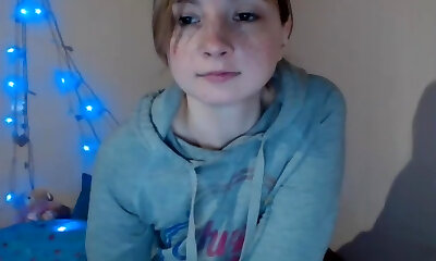 19 year aged busty webcam gal with innocent face touches her big natural ti